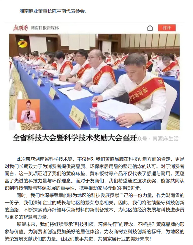 科技之光!黃麻品牌榮膺湖南省科技獎(jiǎng),共筑綠色家居夢(mèng)